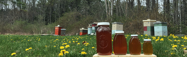 Northern Honey Bees keeps hives at pollinator friendly farms in Dover and Lee, New Hampshire. Honey bees forage in a two mile radius around the hive so honey is made from the nectar of a delicious variety of wildflowers and flowering trees. This means flavor and color will vary as the seasons change and different plants come into bloom. In this area some of the major nectar plants are dandelion, black locust, blackberry, basswood, purple loosestrife, japanese knotweed, goldenrod, and aster.